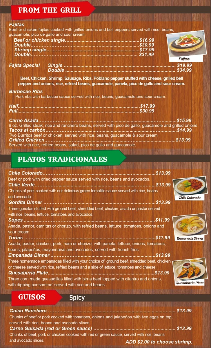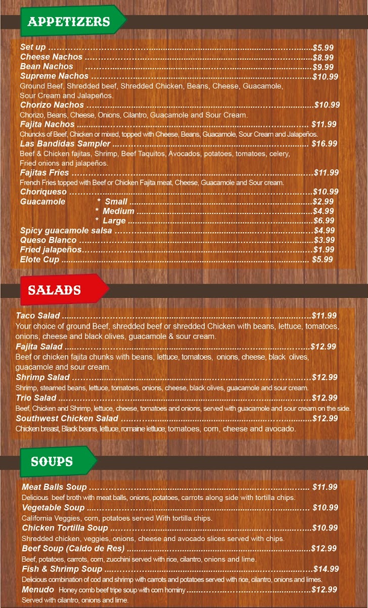 Start your day with breakfast served all day, featuring mouthwatering Chilaquiles or Huevos Rancheros, all at great prices. For lunch and dinner, indulge in sizzling offerings from the grill like Carne Asada and Shrimp Fajitas. Their house specials, including Plato Las Bandidas and Chile Relleno, are sure to satisfy your cravings.